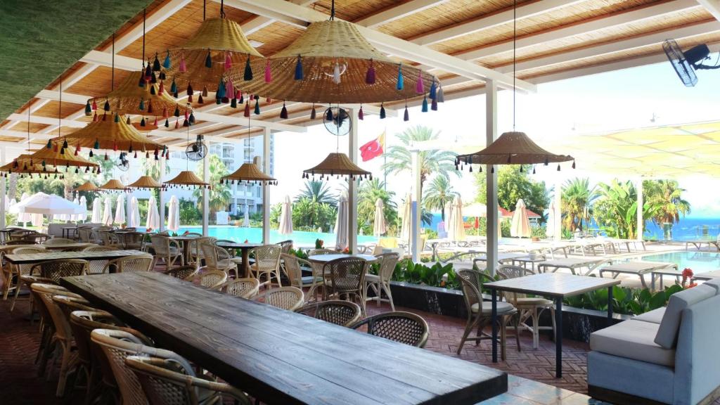 يقع هذا الفندق المصنف 5 نجوم على شاطئ البحر، في وسط المدينة حيث يمكنكم الاستمتاع بالشوارع الحيوية في المدينة المصحوبة بأجواء ومناظر البحر الأبيض المتوسط الباعثة على الهدوء والدفء. تتميز جميع الغرف في أكرا بشرفات توفر إطلالات على البحر المتوسط أو جبال طوروس، وتشمل الغرف المصممة على الطراز العصري تلفزيون ذو شاشة مسطحة مع قنوات فضائية وخدمة الواي فاي مجانًا. يوفر فندق أكرا بارات ومطاعم متعددة، ويقدم بيسترو Pablito الأطباق المميزة من المطابخ التركية والعالمية، كما يوفر مجموعة متنوعة من الأطباق لإمتاع الضيوف، بما في ذلك المأكولات البحرية والخبز الطازج والبيتزا والأطباق المشوية والباستا، وتتوفر الأطعمة العضوية ومجموعة من الوجبات الخفيفة، كما يقع مطعم Asmani في الطابق الـ10 من الفندق، ويتميز بإطلالات على جبال طوروس بيه المذهلة والبحر الأبيض المتوسط والمدينة. يشتمل مركز العافية على ساونا وحمام تركي ومجموعة من جلسات المساج، ويمكن للضيوف ممارسة التمارين في الجيم المجهز جيدًا أو لعب التنس في ملاعب المنتجع. يقع فندق أكرا على بعد 3 كم من مول تيرا سيتي ومنطقة المدينة القديمة التي تضم العديد من المقاهي والبارات، فيما يبعد مطار أنطاليا الدولي حوالي 15 كم، وتتوفر مواقف مجانية للسيارات في الموقع.