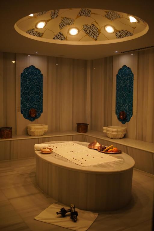 تم تجديد هذا الفندق ذو الـ 5 نجوم في عام 2019، ويوفر غرف فاخرة تحتوي على تلفزيون بشاشة مسطحة في وسط مدينة بورصة. تشمل المرافق 4 مطاعم وسبا ومسبح في الهواء الطلق مع تراس يطل على المدينة. تتميز الغرف المكيفة في فندق ألميرا ثيرمال آند كونفينشين سنتر بألوان دافئة وأثاث خشبي أنيق. تحتوي جميع الغرف على تلفزيون مع قنوات الكابل وميني بار ومرافق صنع القهوة والشاي. يمكن للضيوف الاسترخاء بجانب المسبح في مطعم Havuz الذي يقدم قائمة مأكولات انتقائية. ويمكنهم أيضاً بعد تناول وجبة طعام لذيذة الاستمتاع بالكوكتيلات في أحد البارات الثلاثة. يوفر فندق ألميرا ثيرمال آند كونفينشين سنتر العديد من مرافق العافية والترفيه، بما في ذلك المسبح الحراري الداخلي مع شلال اصطناعي وحمام تقليدي على الطراز الأصلي وبار للمشروبات الصحية. يقع مسجد بورصة الكبير على بُعد 2.5 كم من فندق ألميرا ثيرمال آند كونفينشين سنتر، في حين يقع مركز كينت ميداني للتسوق على بُعد 200 متر. تقع منطقة نيلوفر الصناعية المنظمة على بُعد 13 كم، ويقع مركز توياب للمعارض على بُعد 6 كم. يقع مطار ينيسير على بُعد 45 كم، بينما تقع قمة أولوداغ على بُعد حوالي 40 كم،يقع مطار صبيحة جوكِن على بُعد 118 كم من مكان الإقامة.