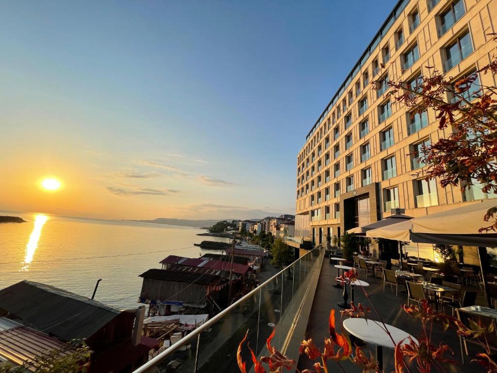 يوفر فندق "دبل تري باي هيلتون طرابزون" المواجه للبحر الراحة والاسترخاء لضيوفه مع سهولة الوصول إلى مركبات النقل العام، ويتميز بموقعه بالقرب من الطريق السريع الدولي ويقع على بُعد 15 دقيقة من المطار و10 دقائق من وسط المدينة. يقع الفندق على طريق D010 السريع العام على ساحل البحر الأسود، ويوفر منفذاً مباشراً إلى الشاطئ، ويسعد مكان الإقامة بخدمة ضيوفه باعتباره أقرب فندق مصنف 5 نجوم من سلسلة فنادق عالمية إلى ملعب طرابزون ميديكال بارك أرينا، ويمكن للضيوف في طرابزون، حيث تقام العديد من الفعاليات الرياضية، الوصول بسهولة إلى ملاعب التنس والمجمعات الرياضية ومراكز التسوق والجامعات الواقعة بالقرب من الفندق. يمكن للضيوف الاستمتاع بتناول الأسماك مثل الأنشوفة والحدوق والنكهات التقليدية الخاصة مثل كرات لحم آقجة آباد والطواجن والحلويات مثل ببجورة وحلوى لاز وبودينغ أرز هامسيكوي والعديد من نكهات البحر الأسود الفريدة من نوعها الأخرى في مطعم Visera الخاص بمكان الإقامة الذي لا يقدم المشروبات الكحولية، كما يمكنهم الحفاظ على لياقتهم في مركز اللياقة البدنية الخاص بمكان الإقامة الذي يوفر إطلالة رائعة على البحر والاستمتاع بالحمّام التركي والساونا وغرفة البخار والمسبح الداخلي مع إطلالة على البحر والتخلص من تعب النهار. يمكن للضيوف الاستمتاع بالإطلالة والنوم المريح على سرير من ماركة Hilton Serta أثناء رحلات العمل الخاصة بهم ويمكنهم قضاء إقامتهم براحة في غرف مكان الإقامة البالغ عددها 189 غرفة، بما في ذلك الغرف المتصلة الخاصة بمكان الإقامة أثناء قضاء عطلتهم مع عائلتهم. ترحب طرابزون بالضيوف بأزهارها "وارغيت" التي تستحق المشاهدة في الربيع والمرتفعات الباردة والطبيعة الرائعة في الصيف والمناخ المعتدل في المدينة في الشتاء ومناظر الثلوج في المرتفعات.