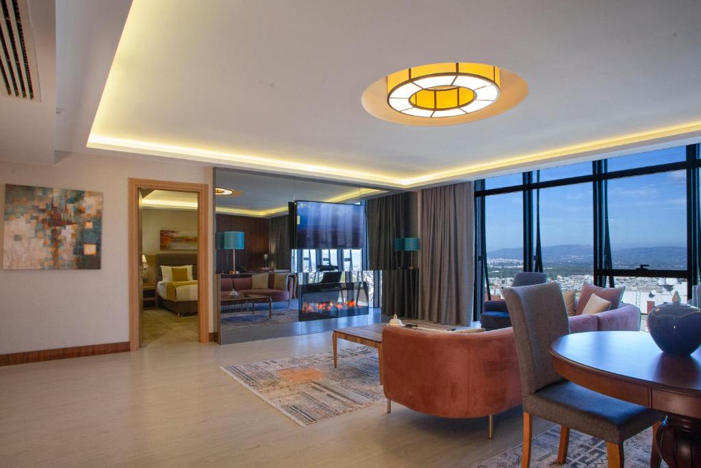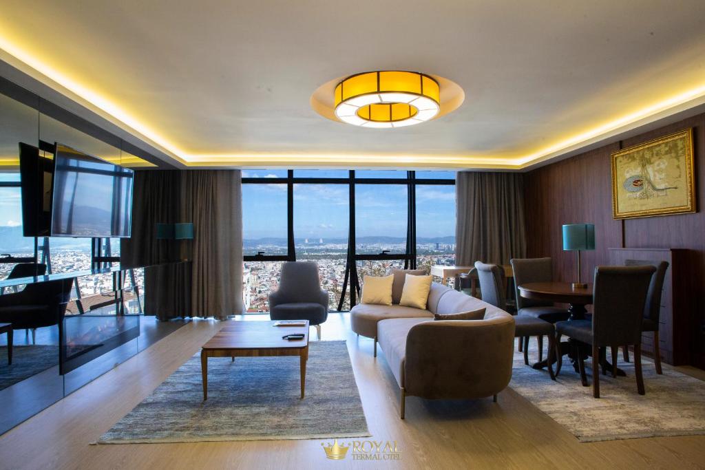 يقع Royal Termal Hotel في بورصة، وعلى بُعد 20 كم من منتزه أولوداغ الوطني، وهو مكان إقامة يوفر مواقف خاصة للسيارات مجاناً وتراس ومطعماً، كما يوفر هذا الفندق المصنف 4 نجوم خدمة الواي فاي مجاناً وخدمة الغرف ومكتباً للاستقبال يعمل على مدار الساعة، فيما يوفر مكان الإقامة خدمة الكونسيرج ومنطقة لتخزين الأمتعة وخدمة صرف العملات للضيوف. تضم كل غرفة في الفندق خزانة ملابس، كما تتميز كل غرفة في فندق Royal Termal Hotel بأنها مكيّفة وتضم تلفزيون، في حين توفر بعض الغرف إطلالة على المدينة، كما توفر غرف الضيوف صندوق ودائع آمن. يقدم مكان الإقامة إفطار كونتيننتال أو إفطار من مأكولات حلال. يقع Royal Termal Hotel على بُعد 1.7 كم من متحف أتاتورك و2.5 كم من مجمع المرادية، ويعتبر مطار ينيسير المطار الأقرب للفندق، حيث يبعد مسافة 59 كم.