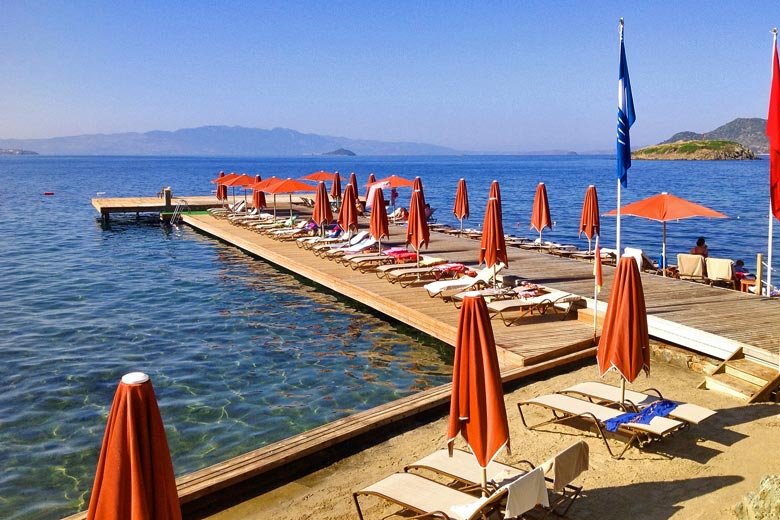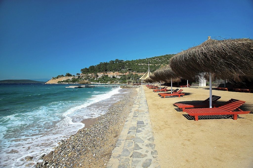 تواجد شاطئ فينك بين طيات منطقة أورتاكنت في مدينة بودروم، ويتميز بالمياه الزمردية الزرقاء التي تساهم في الشعور بالسلام والهدوء بعيدًا عن صخب الحياة.