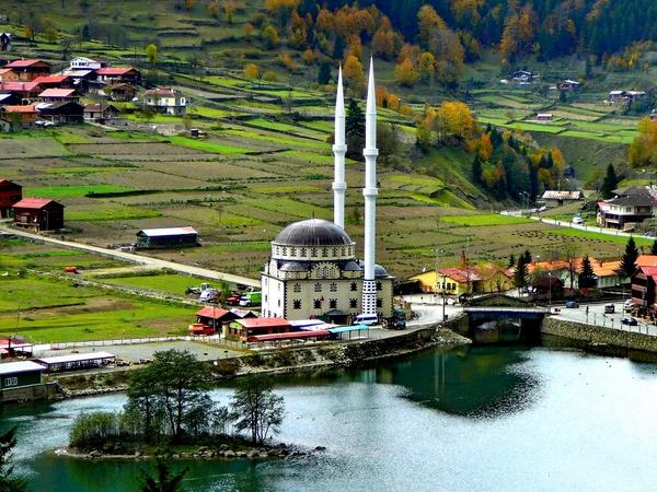 يقع المسجد على حافة بحيرة اوزنجول. والبناء كان عبارة عن مسجد قديم تم ترميمه واعادة مأخراً حيث يتمتع ذلك المسجد بموقع رائع يسحر كل السياح واصبح رمزا تشتهر به بلدة اوزنجول.